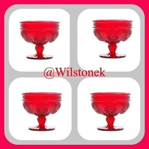 Rare- The Pioneer Woman Red Adeline footed glass 10 oz Sundae Cups - Set of 4: