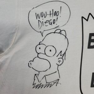 The shirt has a sketch of Homer Simpson from one of The Simpson artists from Season 30. Please use the pictures to judge the condition and measurements because I dont accept returns. Feel free to message me if you have any questions or offers. Thanks for viewing, and make sure to check out my other listings