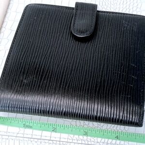 The Louis Vuitton Epi Leather Porte Billes Compact Wallet is a stylish and luxurious accessory designed for women. Crafted in black Epi leather, this bifold wallet features a button snap closure for security. With its compact size, it is perfect for carrying essential cards and cash in a sleek and sophisticated manner. At this further reduced price, the LV dust cover is a small separate purchase. Please message me first if you'd like the LV cover to be included. W need to come up with price.
