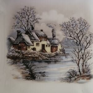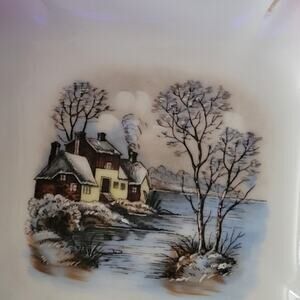 The medium and largest size are pink and white with transfer winter scenes.