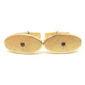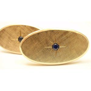 RARE TIFFANY AND CO. 14K YELLOW GOLD TEXTURED SAPPHIRE MENS CUFFLINKS