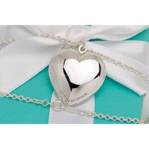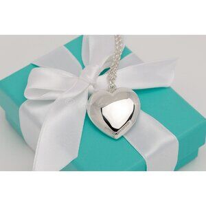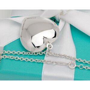 100% Authentic Rare Tiffany & Co. Vintage Puffy Heart Necklace XL 30mm Pendant Silver on a 16" Chain