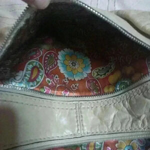 Rare Tignanello Leather Purse, Tan w/Gorgeous Fall Paisley lining, *Keychain inc