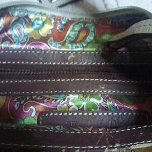 Rare Tignanello Leather Purse, Tan w/Gorgeous Fall Paisley lining, *Keychain included