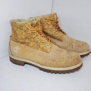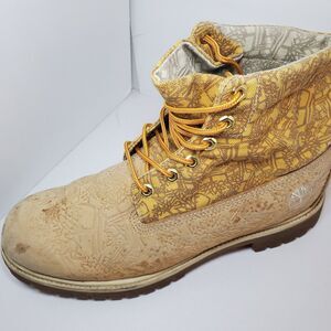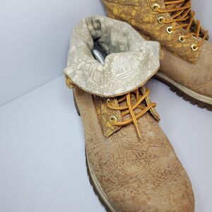 Rare Timberland Mens Anti Fatigue Canvas Embossed Leather Lace Up Boots Sz 11.5