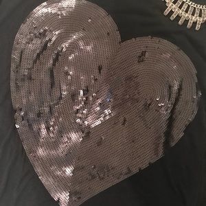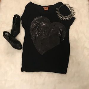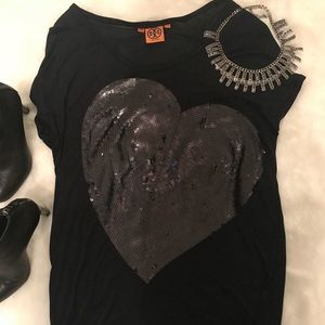 Rare 🔥 Oversized Tory Burch Top T Sequin Heart🖤 Authentic Tory Burch Size XS but would fit a small. Great w leggings or distressed jeans and booties. Can dress this up or wear casual. Huge oversized heart is fantastic.