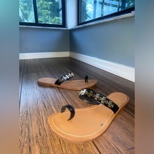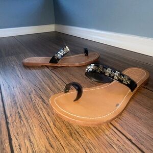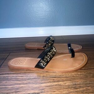 Rare Tory Burch miller sandals toe ring sandal logo sandal patent leather