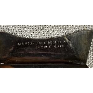 The brand, Simpson Hall Miller & Co, is known for their high-quality metalware, and this plate is no exception. Its object type is a plate, and it is perfect for holding toothpicks or other small items. Whether you're a collector or just looking for a unique piece to add to your home, this rare treble plate toothpick holder is sure to impress.