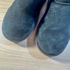Rare UGG Kids Mini Bailey Bow Scalloped Boot Black Suede Youth Size 3 (1013269K)