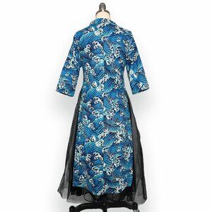 Rare Ukiyo-e Art "The Great Wave off Kanagawa" Print Mandarin Collar Dress