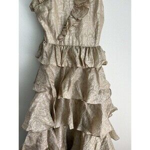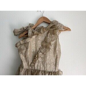 Rare Ulla Johnson Organza Brocade Ruffled Gown Ivory Gold Metallic Tiered Dress