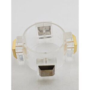 Rare Unsigned Julie Rubano Wide Lucite Cuff Bracelet With 2 Raised Metal Squares (A9076)
