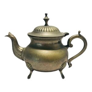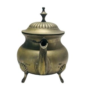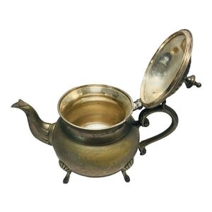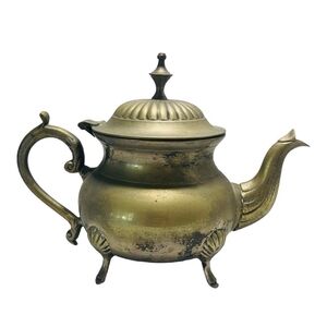 Rare VNTG Footed Ornate Teapot with Handle EPNS Solid Brass Tea Kettle Decor