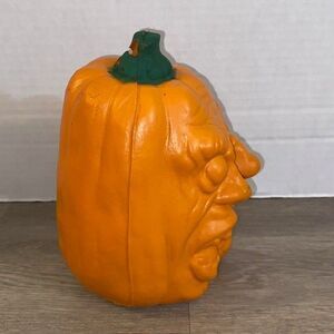 Rare VTG 1980s Grotesque Face Two Faced Foam Figural Halloween Pumpkin Topstone