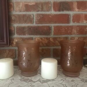 Rare VTG 70’s Stained Leaf Glass Candle Trio Set