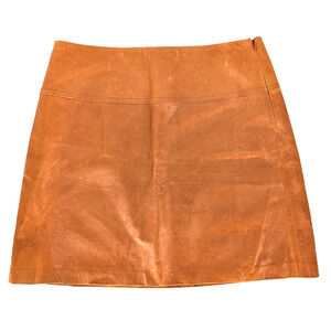 Rare VTG 90s Y2K Cache Camel Leather A Line Preppy Academia Western Mini Skirt 8