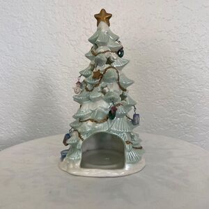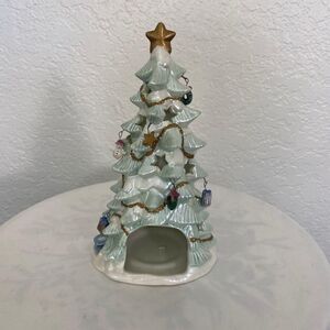 Rare VTG Ceramic 8" Painted Christmas Tree Tealight Holder Miniature Ornaments