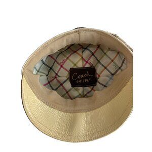 This stylish Twiggy Gogo Newsboy hat features Coach's signature canvas design, complemented by a shiny leather brim and plaid lining.