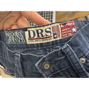 The product is a rare pair of vintage Droors Brand corduroy pants in size 30x32, featuring a blue denim color with a Y2K style design. These pants are a straight leg fit, made from denim fabric, and are themed around USA style. The trousers are part of men's clothing and are of regular size type. The brand's reputation for quality and style is reflected in these classic and unique pants.