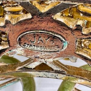 Jay Strongwater "Heidi" baby carriage picture frame. This Gorgeous round picture frame is a baby stroller 3 dimensional shape. This item is RETIRED. This frame is from the Allegra collection and the colors are pastel. Handpainted enamel over metal. Silver toned trim. Gorgeous and RARE Jay Strongwater frame was from Neiman Marcus. The backside of the frame has the Jay Strongwater logo and the bottom of the carriage has the Jay Strongwater logo. It is accented with enamel and Hand-set Swarovski crystals of the colors blue, green, clear & yellow. It holds a picture at the front of the carriage.