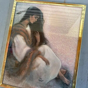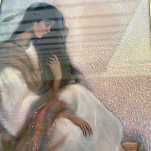 Rare VTG Judy Mastrangelo Foil Art Print Maiden & Moon Framed 8x10" Native Girl