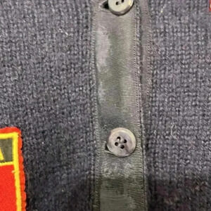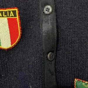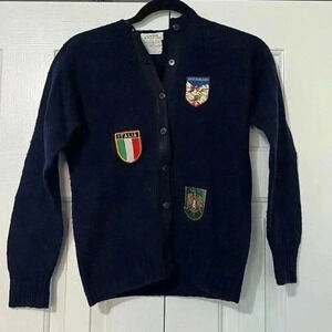 Rare VTG Shetland Wool Cardigan World Patches Navy Size Small Tweed & Tartan
