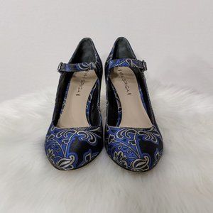 Gentle used condition, no flaw's. Beautiful floral print satin maryjane style heels. 4" block heel, rounded toe and adjustable strap w buckle closure. Women's size 8.