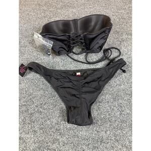 Rare Victoria Secret Bikini Set Black Lace Up Top & cheeky Bottoms Swimwear M