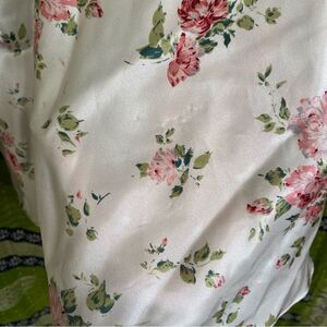 ▪️Style: Vintage 90s gold label 2 piece pajama set, lightweight satin material, semi cropped scalloped sweetheart top, non adjustable spaghetti straps, beaded and embroidered rose detail on top, high rise and high cut bottoms, elastic waistband