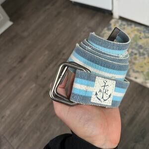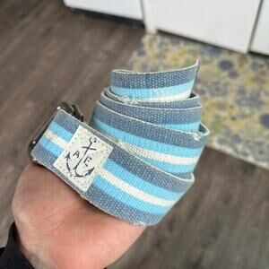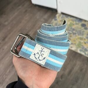 Rare Vintage 00s Y2K American Eagle Blue Nautical Stiped Rope Canvas Adjustable Strap Pull Textile Belt