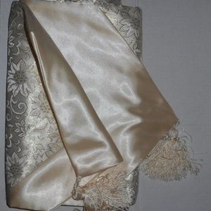 True Vintage Beautifully Designed Rare 14 Piece Martha Stewart Silky/Satiny Beautiful Elegant Mantle Cover, Napkins, Mat, Table Runner, Tassel Rings Christmas Decorations Set. Great for the Holiday, romantic and special occasion dinner. Very hard to find. They are a must have. Great gift idea.