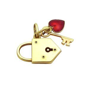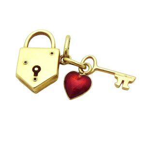 Rare Vintage 14K Gold Art Deco Enamel Key to My Heart Padlock Charm 1930s