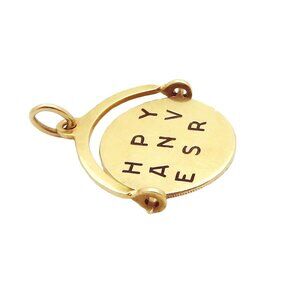 Rare Vintage 14K Gold Enamel Art Deco Happy Anniversary Spinner Charm Pendant