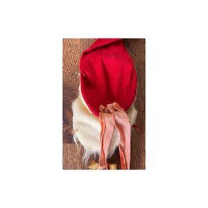 Condition: Good, especially considering it's age. Buyer may opt to iron the ribbons for an even better look. Ribbons seem to have a little sun-fade, but hat is bright red. Eyes and mouth paint in great condition. Off-white beard is secure.