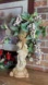 Enhance your home decor with this elegant cherub statue adorned with lush green leaves and grapevine accents. Perfect for adding a touch of sophistication to any room.