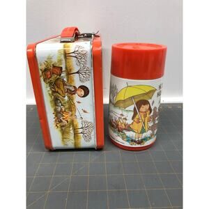 Rare Vintage 1970 Holly Hobbie Orange Metal Lunchbox with Thermos Aladdin Ind.