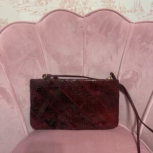 Rare Vintage 1970’s Python Snake Burgundy Bag With Gold Hardware