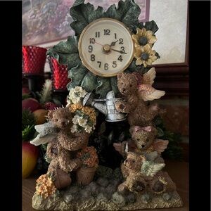 Rare Vintage 1976 Swiss Tea Pot Teddy Bear Cherub Clock‼️FINAL SALE
