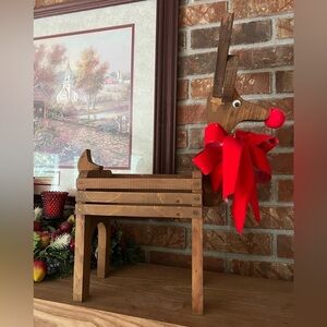 Add this gorgeous handmade solid wood vintage 1983 reindeer to any home decor.