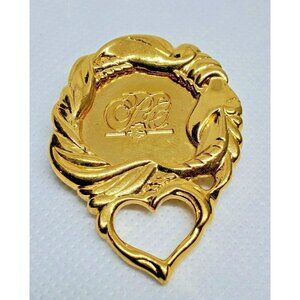 Rare vintage 1991 Avon gold tone collectible brooch with engraved initials, lapel pin jewelry accessory.