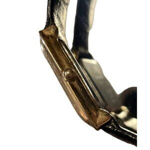 This rare vintage 1992 Guess watch features a striking gold mirrored dial, housed in a square case. It's water-resistant and fitted with a brand new battery. The gold and black color scheme adds a touch of sophistication.