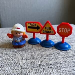 Rare Fisher Price Little People Female Construction Worker Unbranded road signs, selling as a lot.