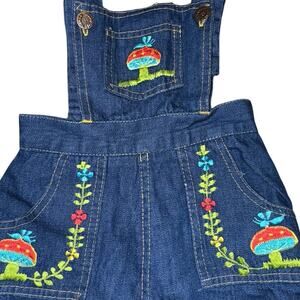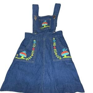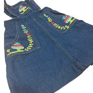 Rare Vintage 4T Girls 90s Cotton Denim Mushroom Embroidered Jumper Overall Dress