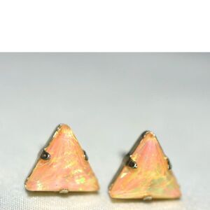 Rare Vintage 50's Petite Iridescent Yellow/Orange Inset Gold Tone Post Earrings