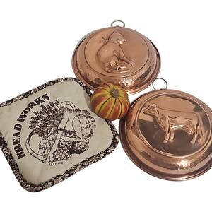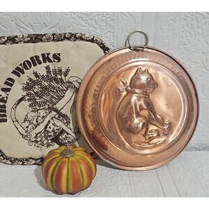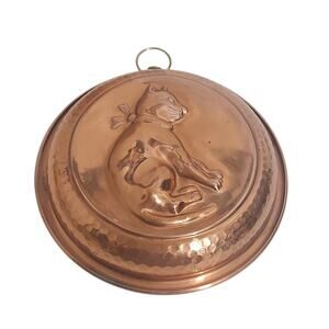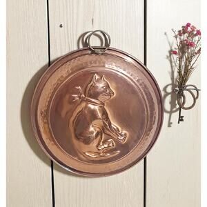 Rare Vintage 6” Copper Cat Mold w Hammered Edge Cottagecore Rustic Country