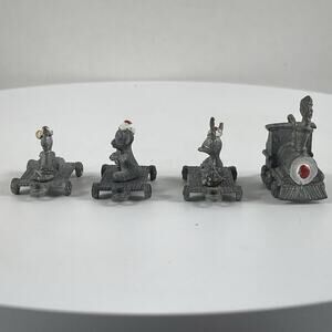 Rare Vintage 70s MSR 4pc Miniature Pewter Christmas FREEDOM TRAIN -Bear Unicorn