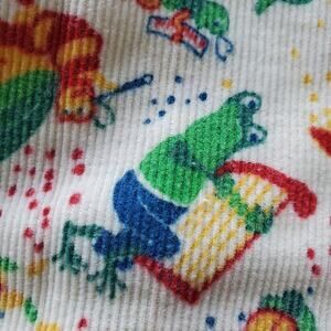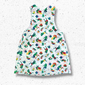 Rare Vintage 80s Handmade Corduroy Jumper Dress Frog & Critter Print Toddler 2T