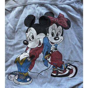 -Patches on one sleeve (see last photo) and front left chest with large Mickey and Minnie graphic on back