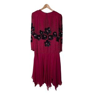 Rare Vintage 80’s Oleg Cassini Sequin Beaded Red & Black Drop Waist Dress