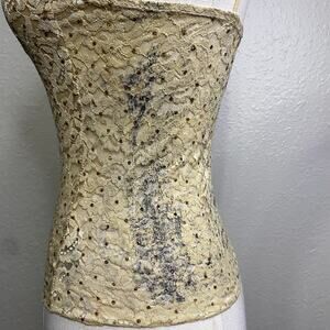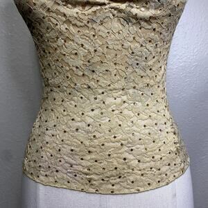 Rare Vintage 90's Forever 21 Bedazzled Gold Lace Glam Grunge Rouched Tank Top
